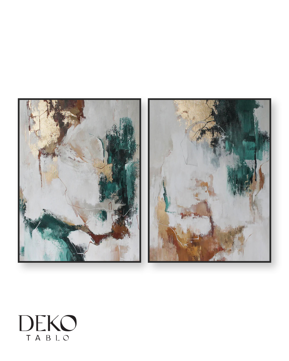 "Doğa" Yeşil Bej Altın İkili Set Yağlı Boya Tablo