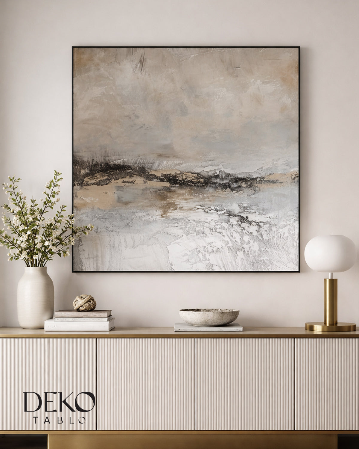 "Eylül" Bej ve Gold Detaylı Soyut Yağlı Boya Tablo
