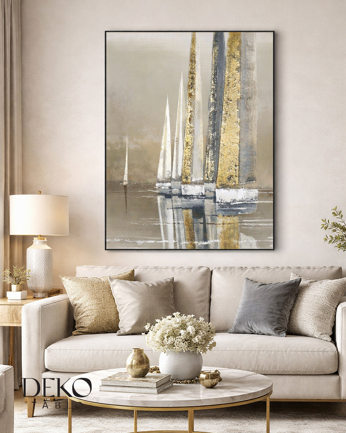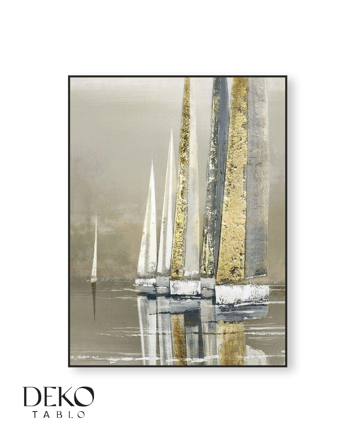 Beyaz Bej Altın Detaylı Yağlı Boya Tablo