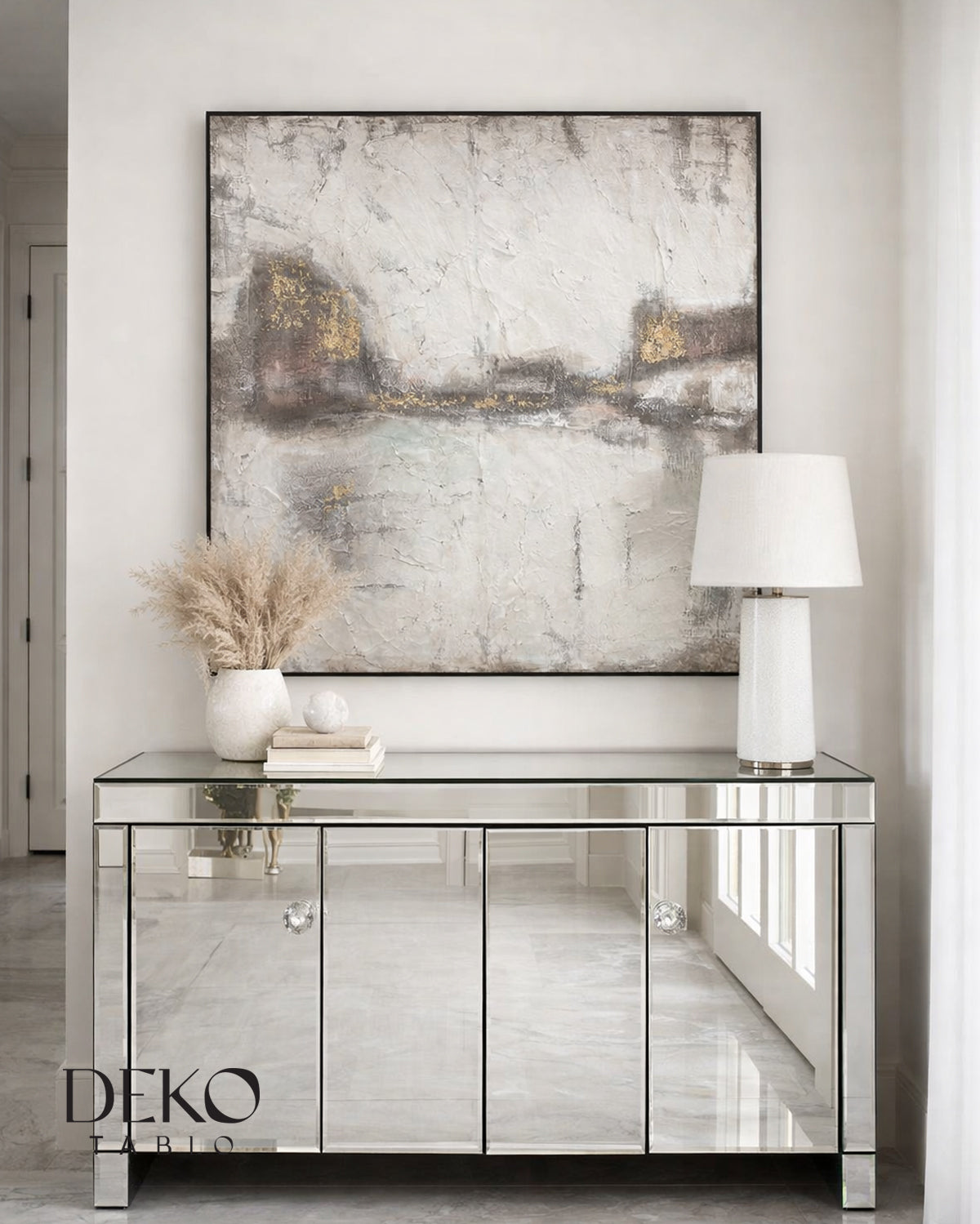 "Dingin" Beyaz Gri Altın Detaylı Yağlı Boya Tablo