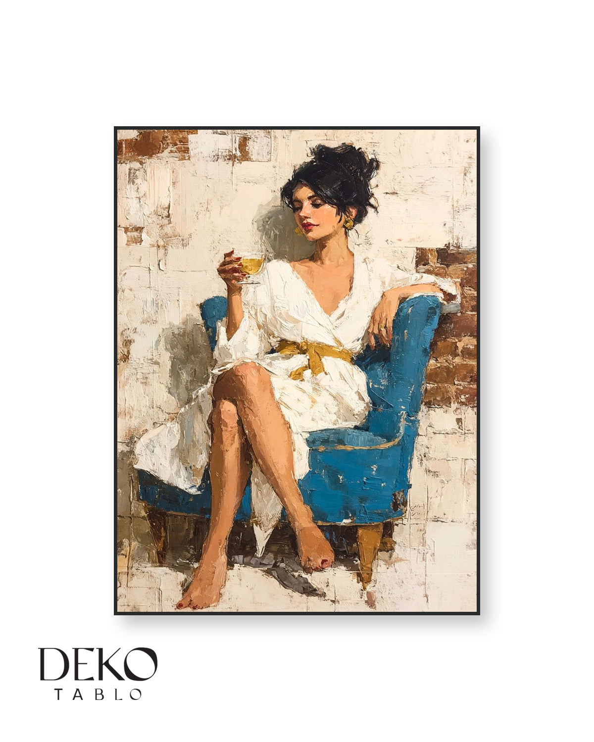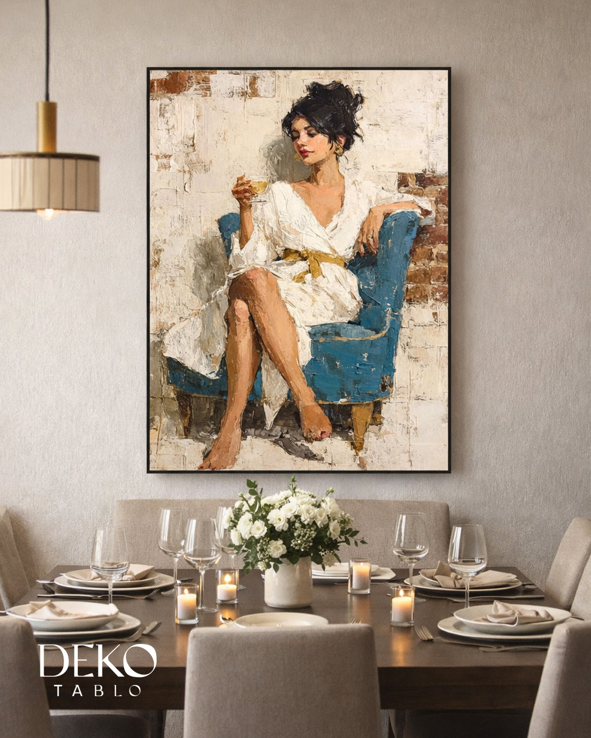 Beyaz Elbiseli Kadın Detaylı Yağlı Boya Tablo