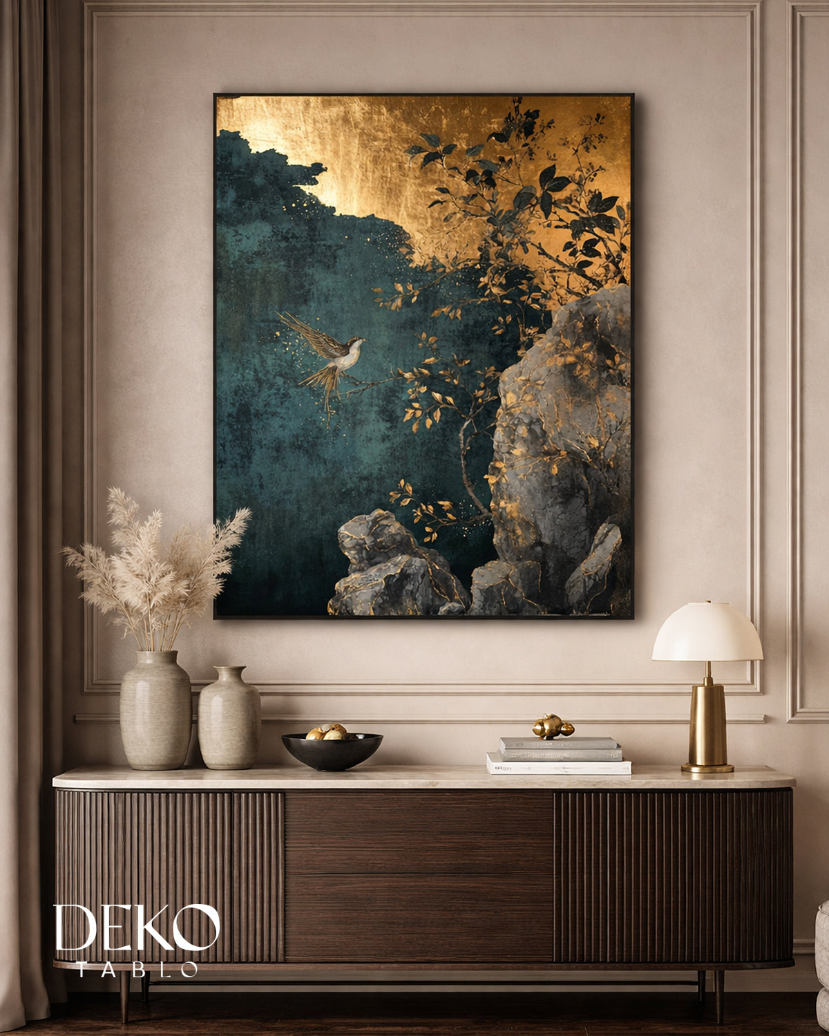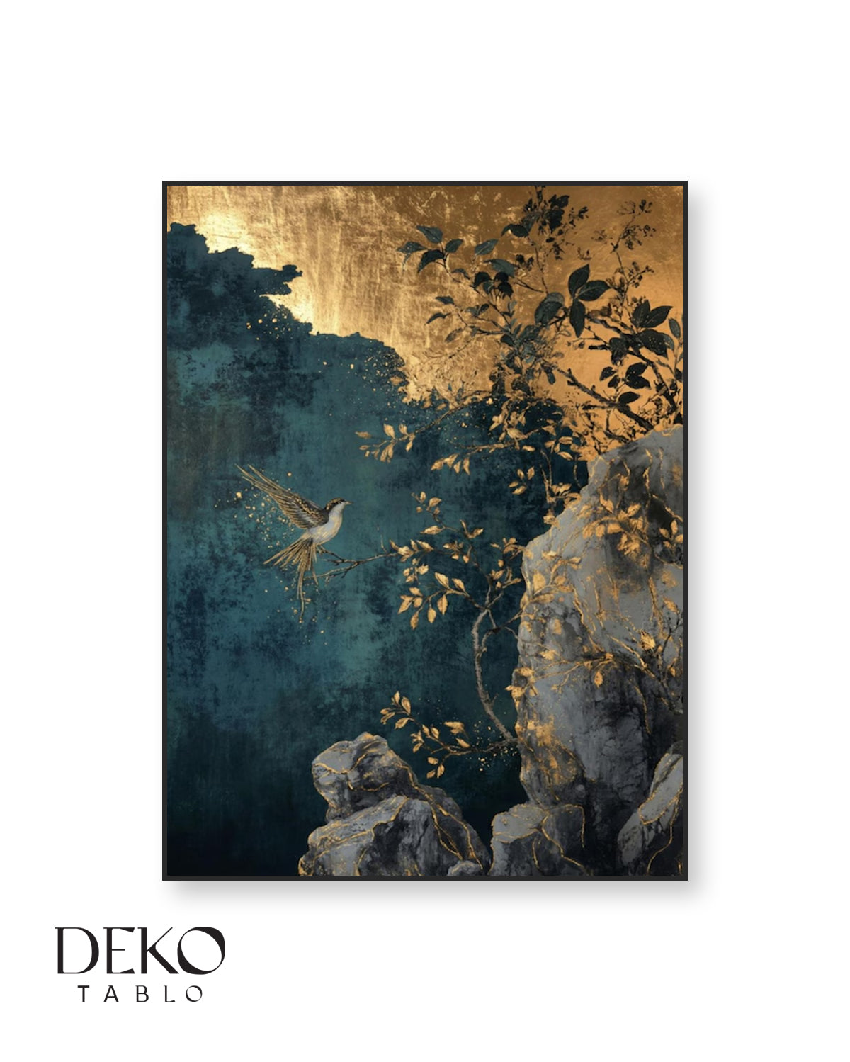 Turkuaz Altın Detaylı Manzara Yağlı Boya Tablo