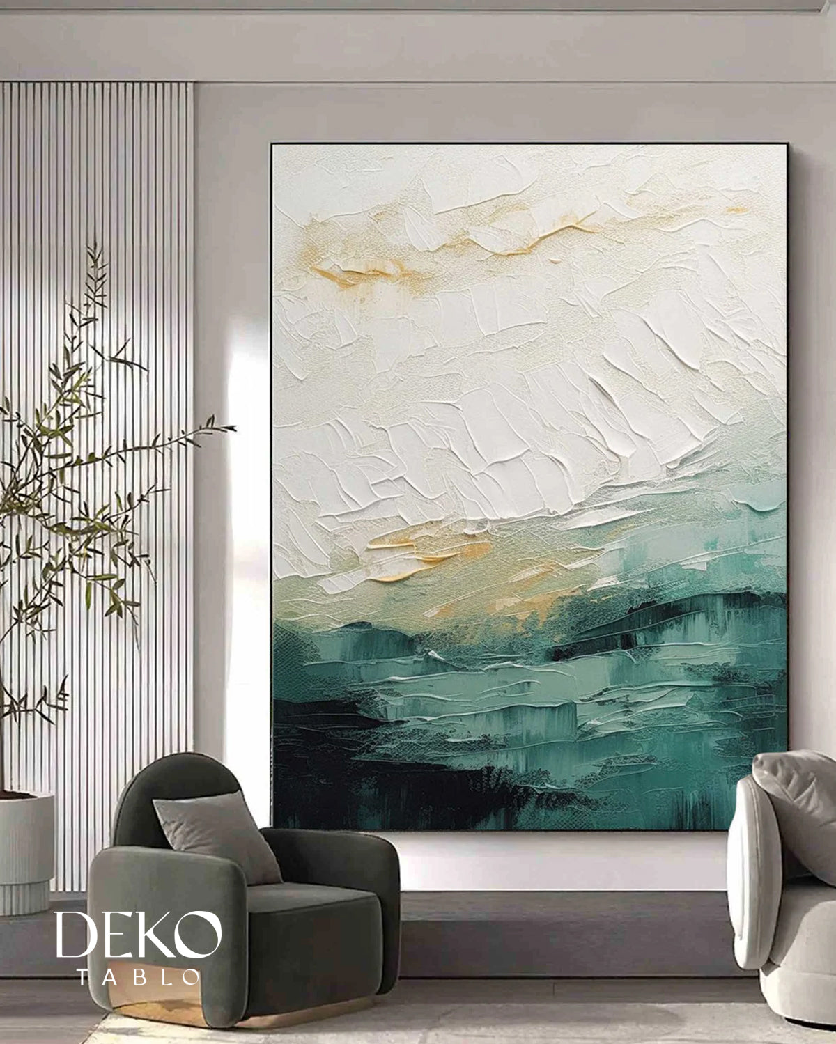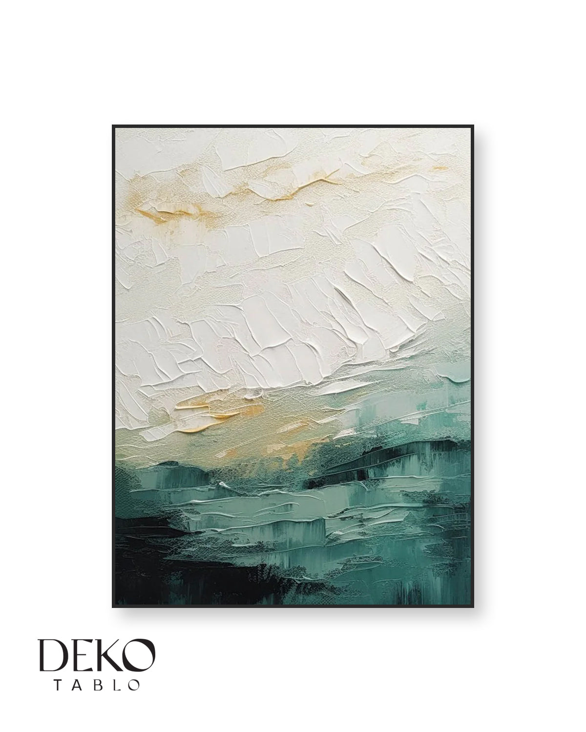 "Duru" Yeşil Beyaz ve Sarı Detaylı Soyut Yağlı Boya Tablo