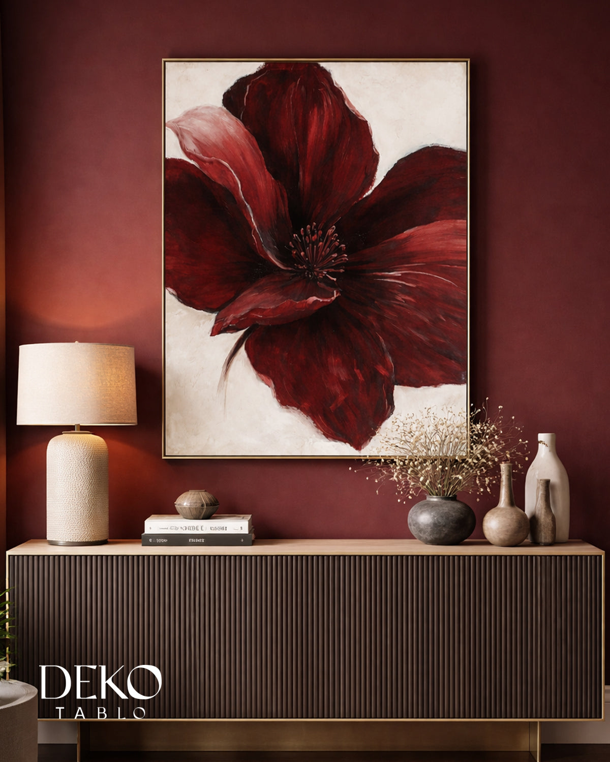 "Tutku" Kırmızı Bordo Beyaz Tonlarında Detaylı Yağlı Boya Tablo