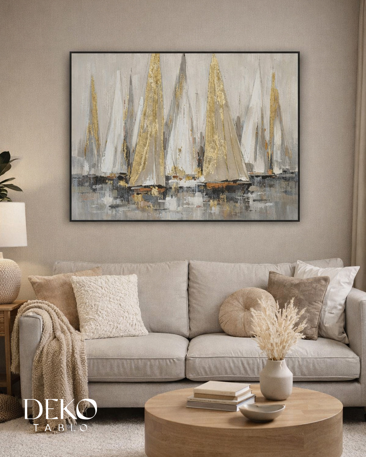 Yelkenli Altın Beyaz Detaylı Yağlı Boya Tablo