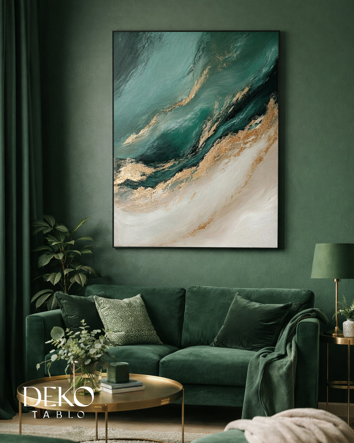 "Yeşil Yol" Altın Yeşil Tonlarında Detaylı Yağlı Boya Tablo